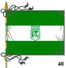 En campo de rojo, fondos de blanco partido de verde. Colores insignias de nuestro departamento; color rojo: fortaleza, valor, honor, osadía y victoria; Color verde: Esperanza, fe, amistad y respeto. Es símbolo de grandeza.