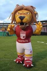 Según cuenta Daniel Samper Pizano en su libro Así ganamos… la idea de adoptar una mascota fue de Guillermo Cortés y un equipo conformado por periodistas, publicistas e hinchas que en principio sugirieron animales como palomas mensajeras. Sin embargo, estos no poseían la suficiente fuerza para representar el poderío de un equipo de fútbol. Por lo tanto el mejor candidato se convertiría en el insuperable Rey de la selva: un león llamado Monaguillo sería desde este instante una insignia para Santa Fe. El cachorro fue traído desde Pereira y semanalmente comía 35 libras de carne. Saltó a la cancha un 24 de Agosto de 1975 y fue aplaudido por 30.000 hinchas, así este nuevo miembro del rojo fue el primer león del mundo en coronarse campeón de un torneo de fútbol. Debido a su tamaño y edad, Monaguillo fue llevado al Zoológico Santa Cruz y allí murió. Pero su alma se ve cada vez que Santa Fe salta a la cancha.